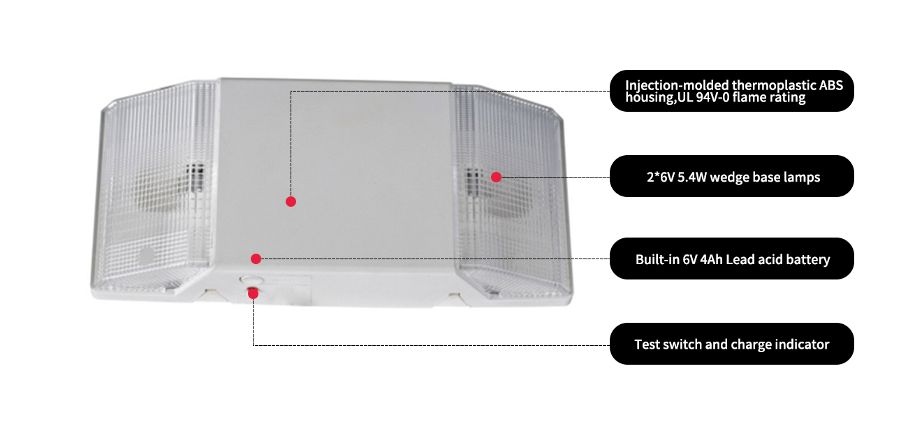 Dom / Produkt / Światło awaryjne / Dwukrotnie lampka awaryjna / JEU4 2x5,4 W Stałą głowę lampy światło awaryjne