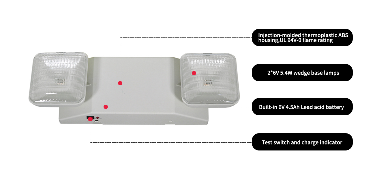 Dom / Produkt / Światło awaryjne / Dwukrotnie lampka awaryjna / JEU1 2x5,4W żarowa lampa awaryjna