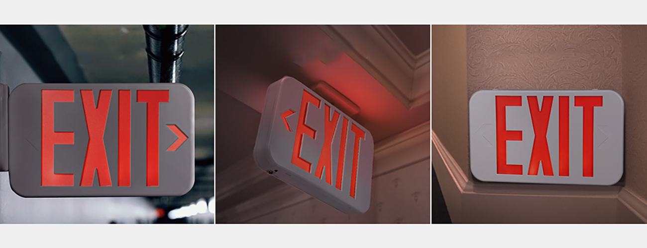 *Konstrukcja - Znak wyjściowy LED jest konstruowany z formowanego wtrysku, opóźniającego płomienia V -0, obudowy termoplastycznej o wysokim uderzeniu. Biała obudowa jest standardem.