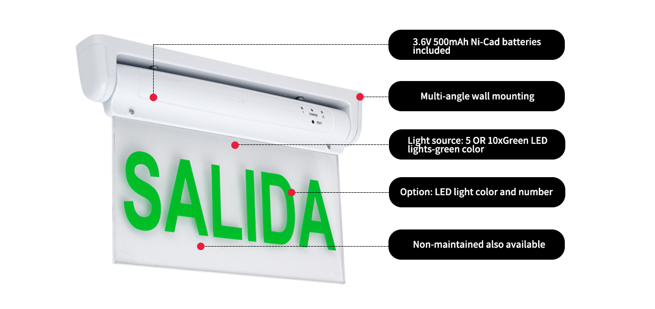 Jest to szereg opraw o znaku wyjścia awaryjnego zaprojektowanych i wyposażonych w rozwiązania techniczne, które sprawiają, że jest odpowiedni do szerokiej gamy zastosowań. Wybór etykiet znaków wyjściowych sprawia, że ​​zasięg jest przywłaszczony wymaganiami o oświetleniu awaryjnym w wielu miejscach, takich jak biura, restauracje, hotele, szpitale i ogólne zastosowania komercyjne.