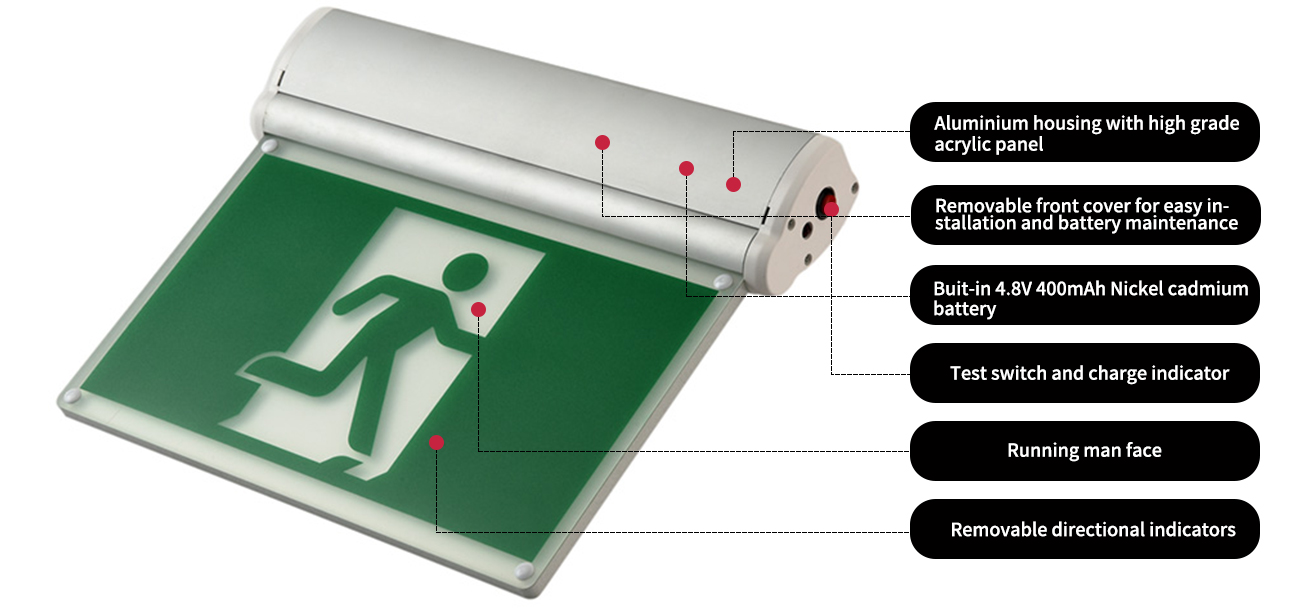 Dom / Produkt / Znak wyjścia / Running Man Exit Znak / JELRM Aluminium 6 -calowy Man LED LED Znak wyjściowy